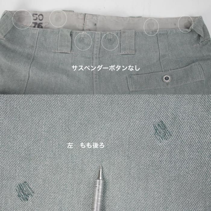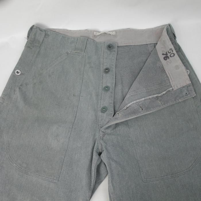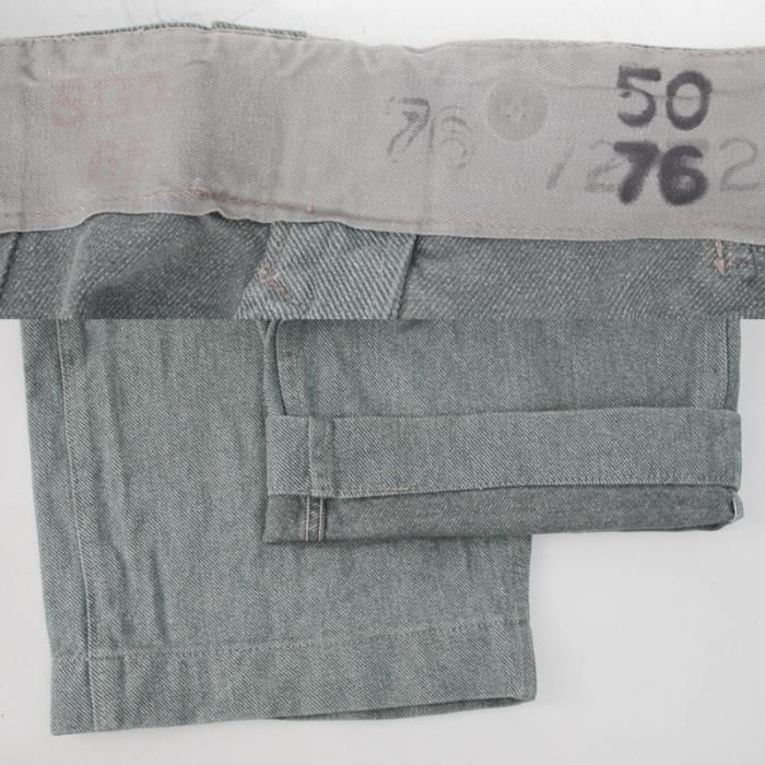 通称デニムパンツ。グリーングレーの独特な色合いはブルーデニムとは異なります。