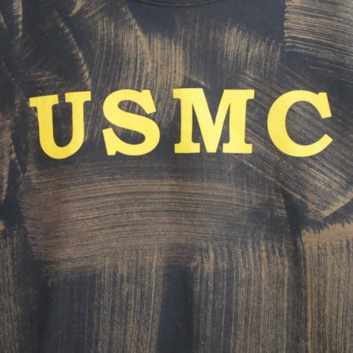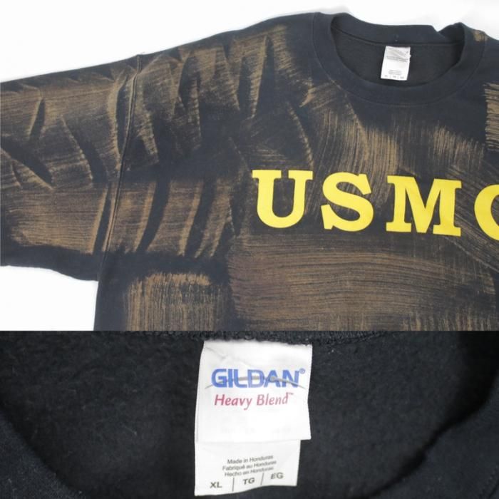 古着 USMC BLK  ブリーチ加工 スウェットシャツ ミリタリープリント ギルダン