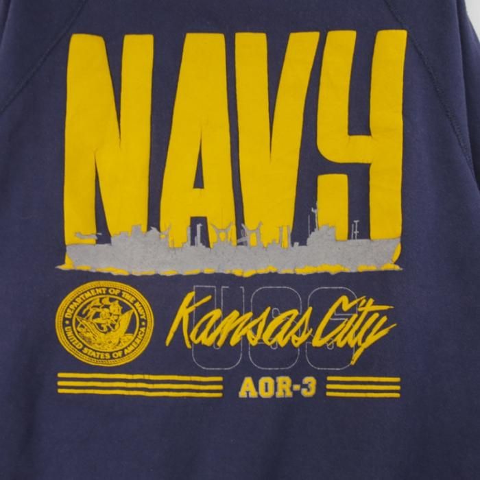 商品名:NAVY USSカンザスシティ 古着 スウェットシャツ SANTEE USA製
