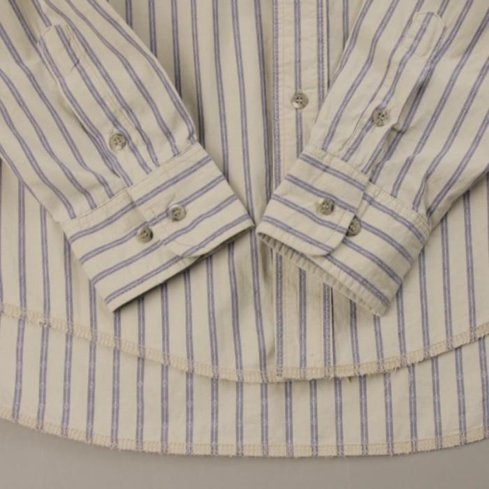 商品名:古着 ラングラー ストライプ シャツ バンドカラー ノーカラー 【メール便可】