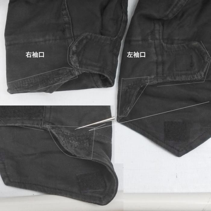 袖口左右とも擦り切れミシンたたき補修されています。