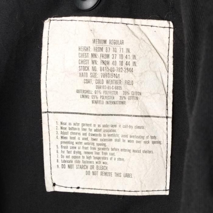 商品名:古着 M-65 フィールドジャケット ブラック (MR) 米軍 DBAコントラクト80s