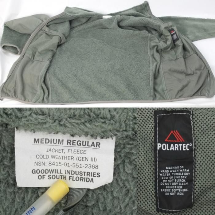 80年代後半から採用されたECWCS(Extended Cold Weather Clothing System/極寒冷地用システム)のレベル3フリース ジャケット です。
