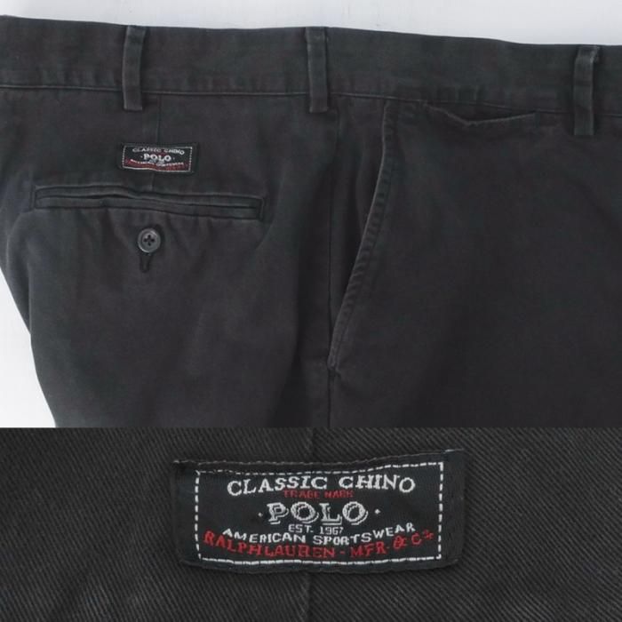 古着 ラルフローレン POLO ブラック チノ パンツ ノータック 実寸W36L29