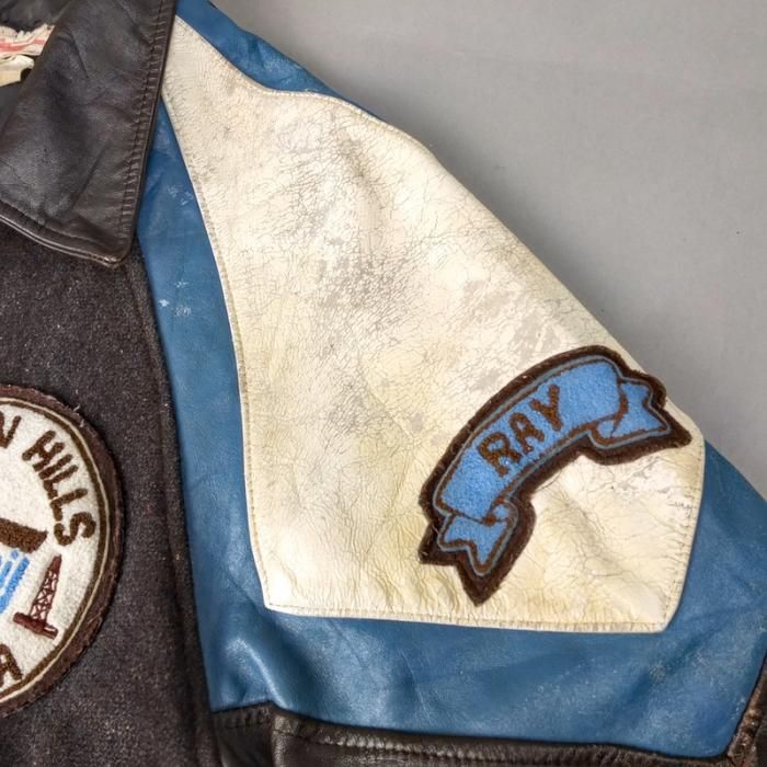 商品名:Adjac スタジャン スタジャン カナダ製 革袖 古着